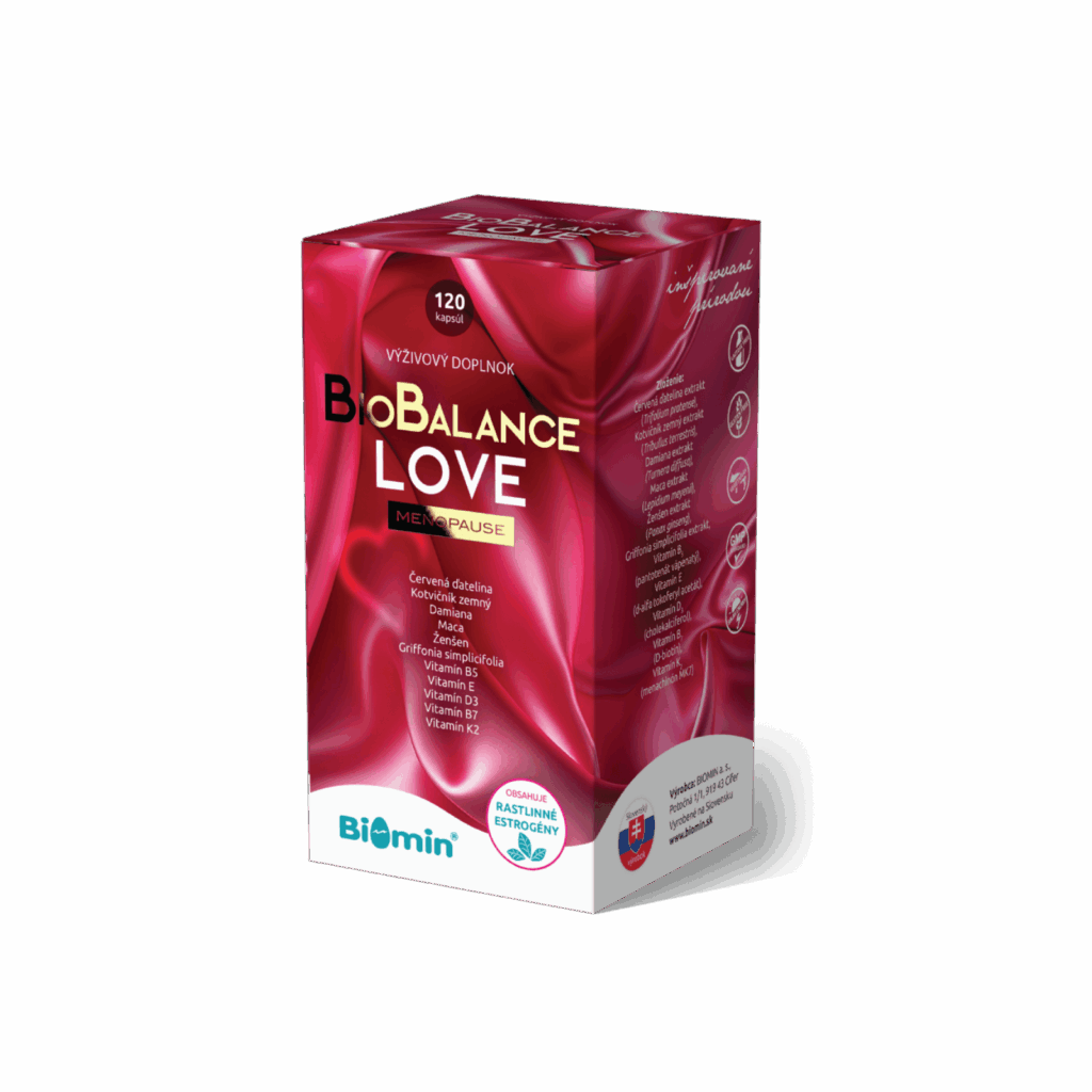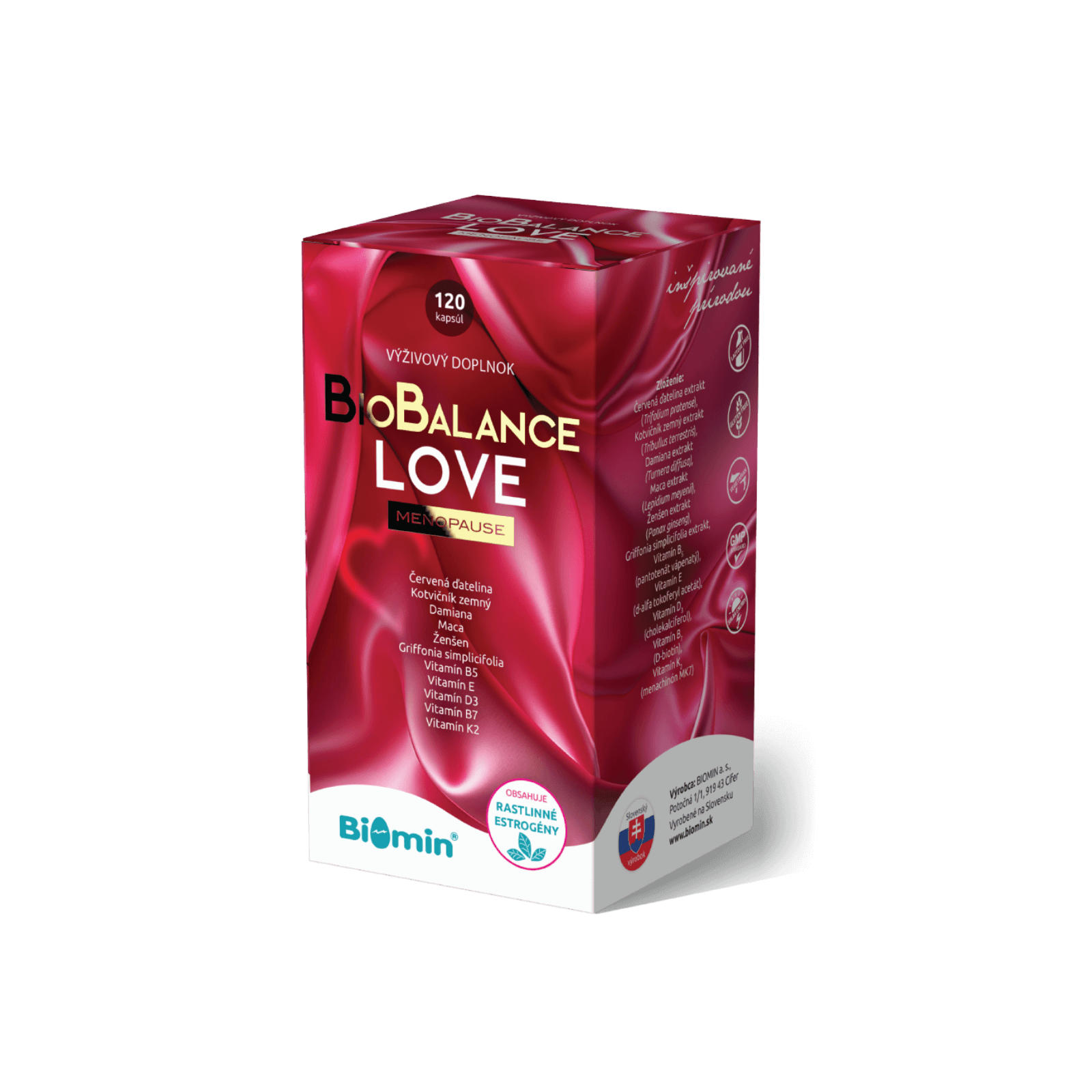 BioBalance LOVE is taken in a dose of 2 capsules daily after meals and is intended for perimenopausal and menopausal women. It contains plant extracts with energizing effects, so its use is recommended in the afternoon at the latest. It is suitable for long-term use because it contains phytoestrogens, the onset of action of which is gradual and becomes fully apparent after 3 months of use. The whole range of BioBalance products contains phytoestrogens and can therefore be interchanged to meet current needs.